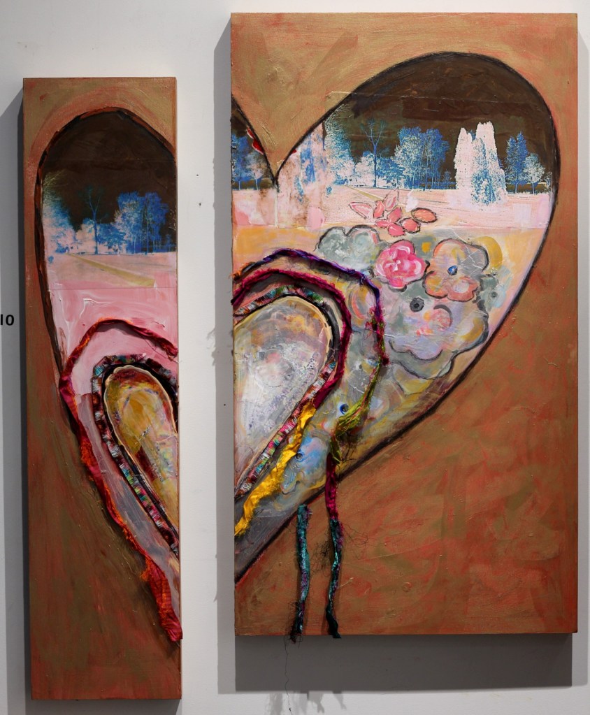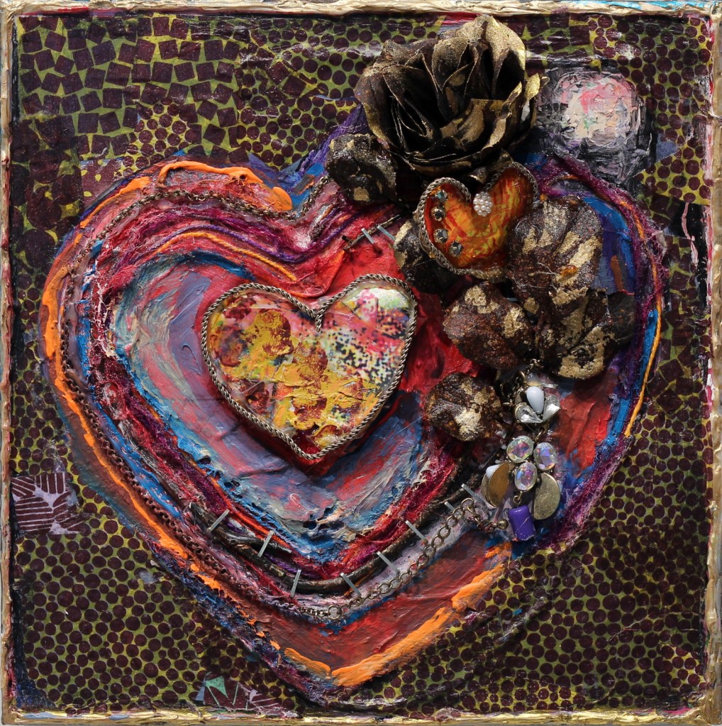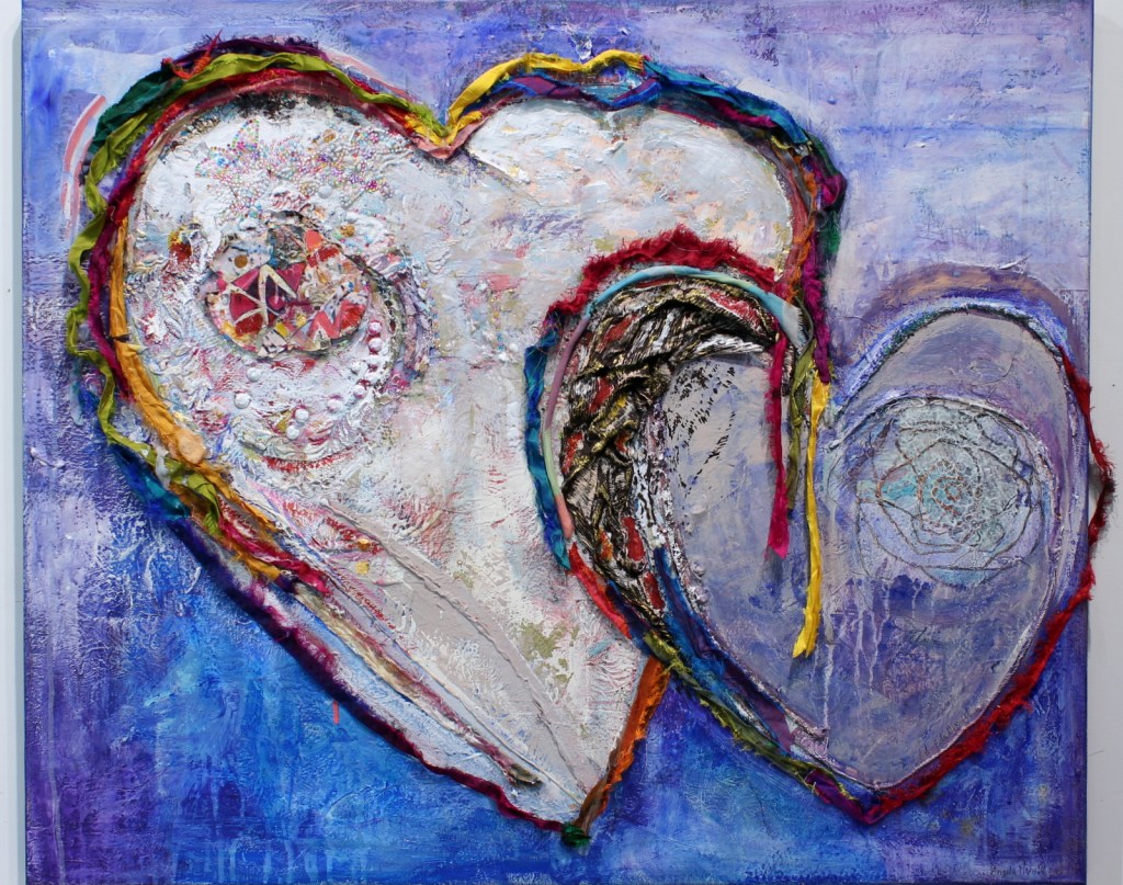 My heart paintings reflect the many  challenges  of covid. They are a celebration of finding the good and the positive…and putting our hearts back together, stronger than ever.