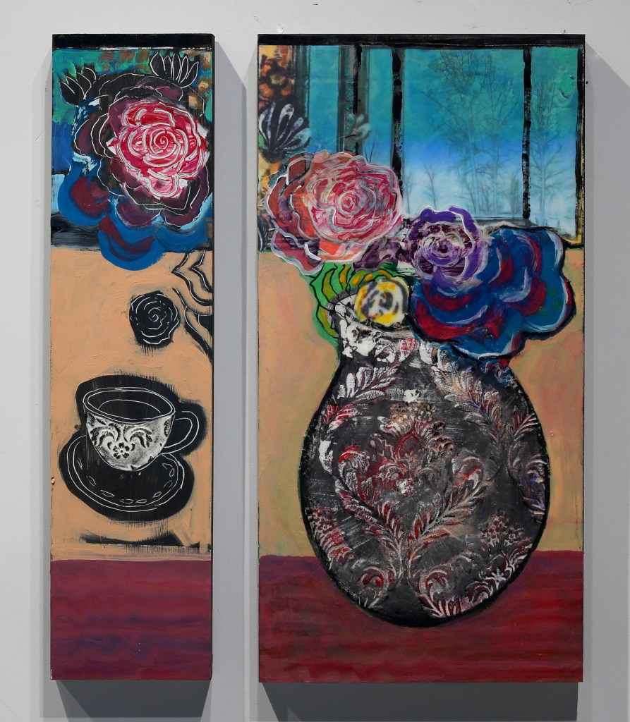 These pieces created for Portals and Pathways are my first works created in a new environment. They incorporate actual portals, combining elements from my old space and from the new.