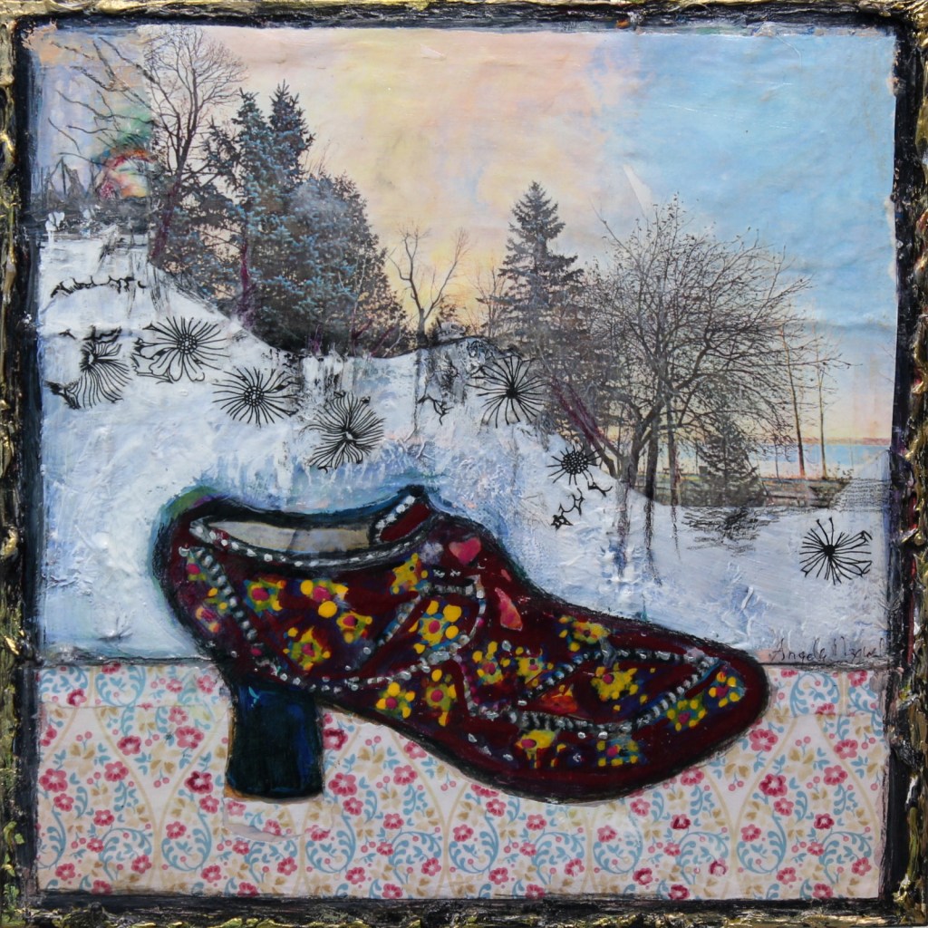 “As I prepared my canvasses and got ready to start this Charmed, I’m Sure series of paintings, I was aware that winter was approaching.  I settled into my studio with these guiding thoughts: